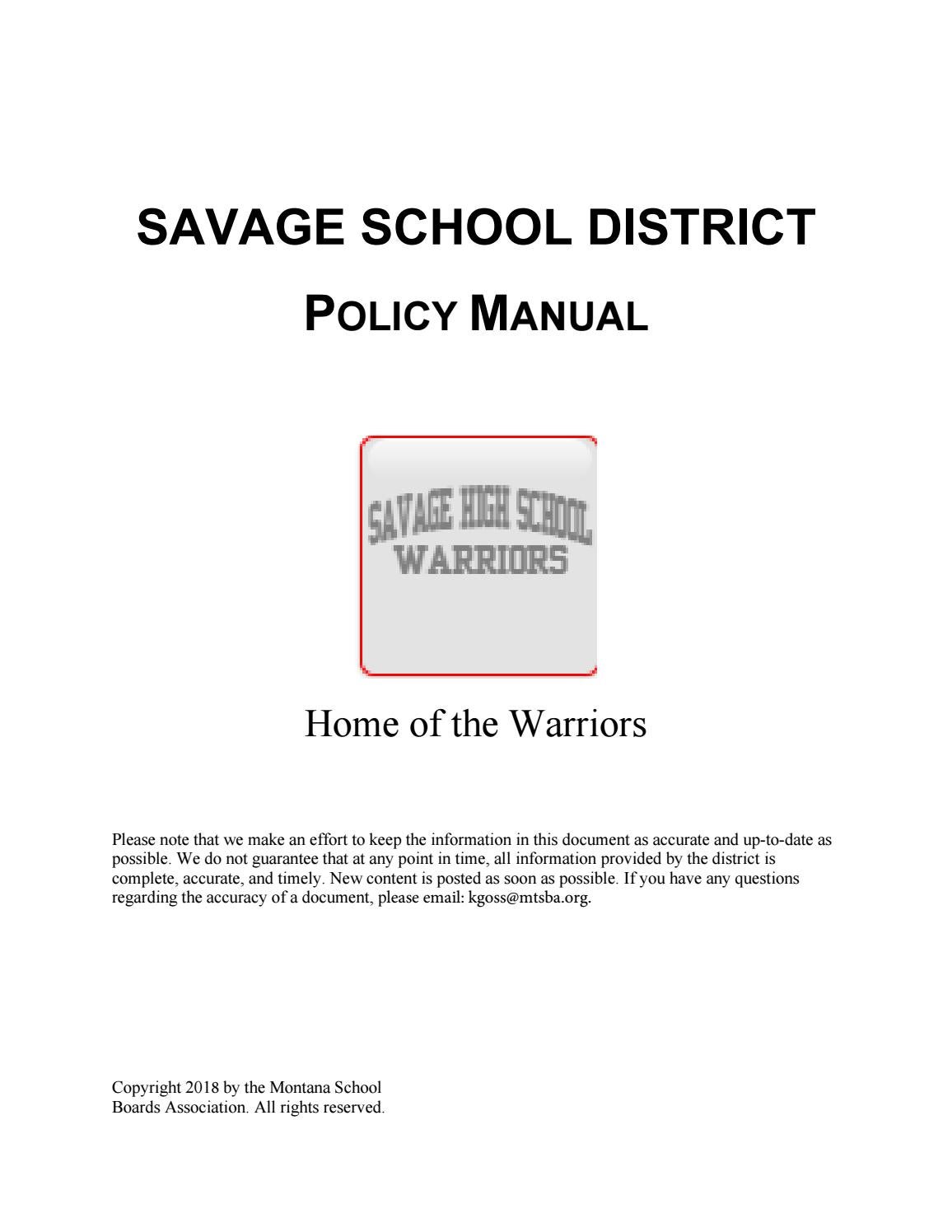 Savage Public Schools Policy Manual Montana School Boards,,Savage Public Schools Policy Manual Montana School Boards,